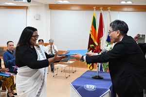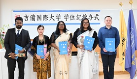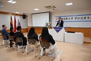 9月20日土曜日、11時より、岡山キャンパスの大講義室会場と高梁キャンパスの国際交流会館会場とをオンライン接続し、秋季学位記授与式を執り行いました。