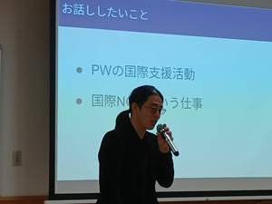 12月16日火曜日、グルーバル人材論の授業に、ピースウィンズ・ジャパン(本部:広島県神石高原町)から夫津木(ふつき)先生に来ていただき、講義をしていただきました。