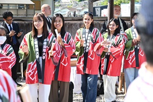 外国学科の学生のほか、参加者および地域のかたがたも一緒に踊る、奉納となりました。