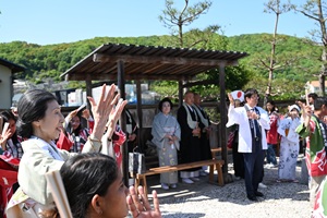 4月25日土曜日、山﨑仙狹先生の日本の芸術の学外授業で、栄西禅師生誕の地にて、栄西禅師御法要に参加し、栄西踊りを奉納しました。