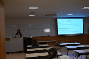 1月28日水曜日2時限、大講義室にて、外国学科在学生のスタディアブロード報告会、交換留学生の発表会を開催しました。